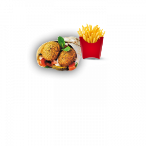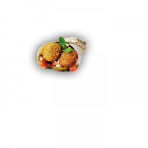 Une tortilla, crudités, 4 pièces de falafels et deux sauces