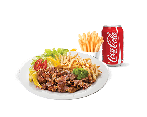 Entrée (une boite de salade), une seule viande, frites, et boulgour maison)
