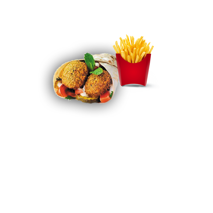 Une tortilla, crudités, 4 pièces de falafels et deux sauces